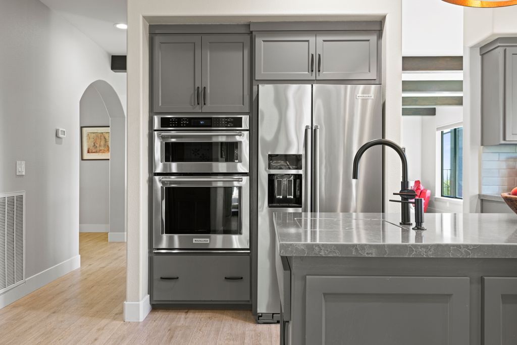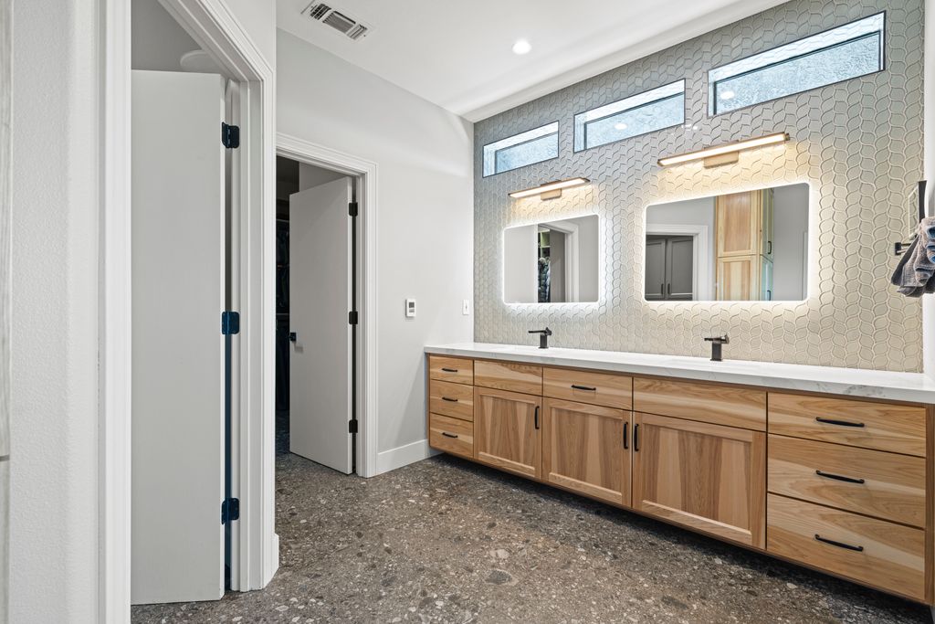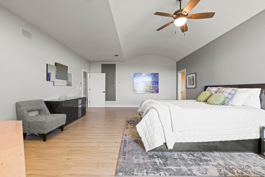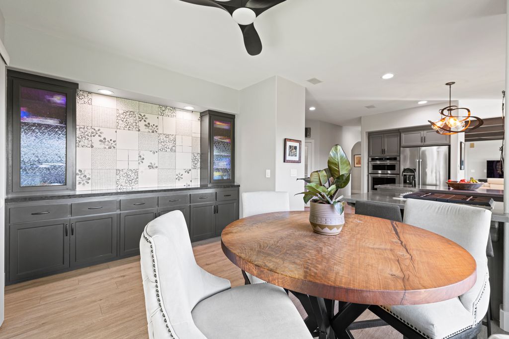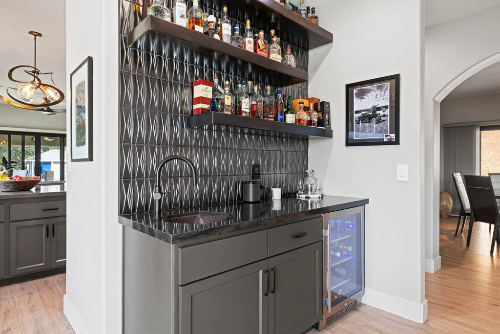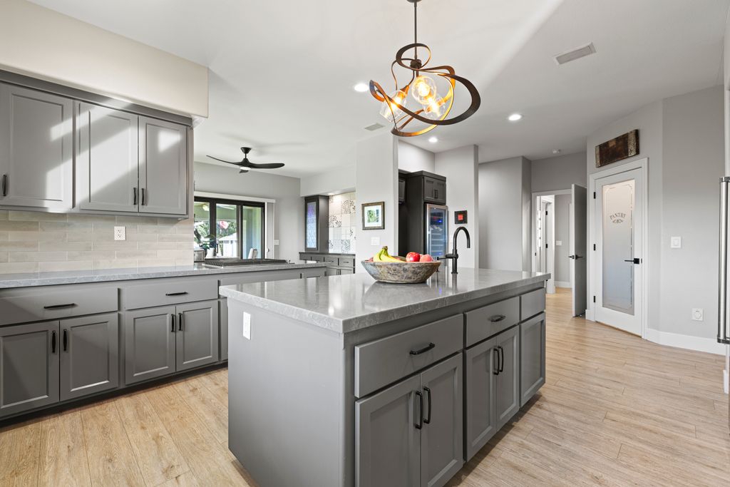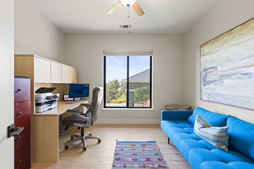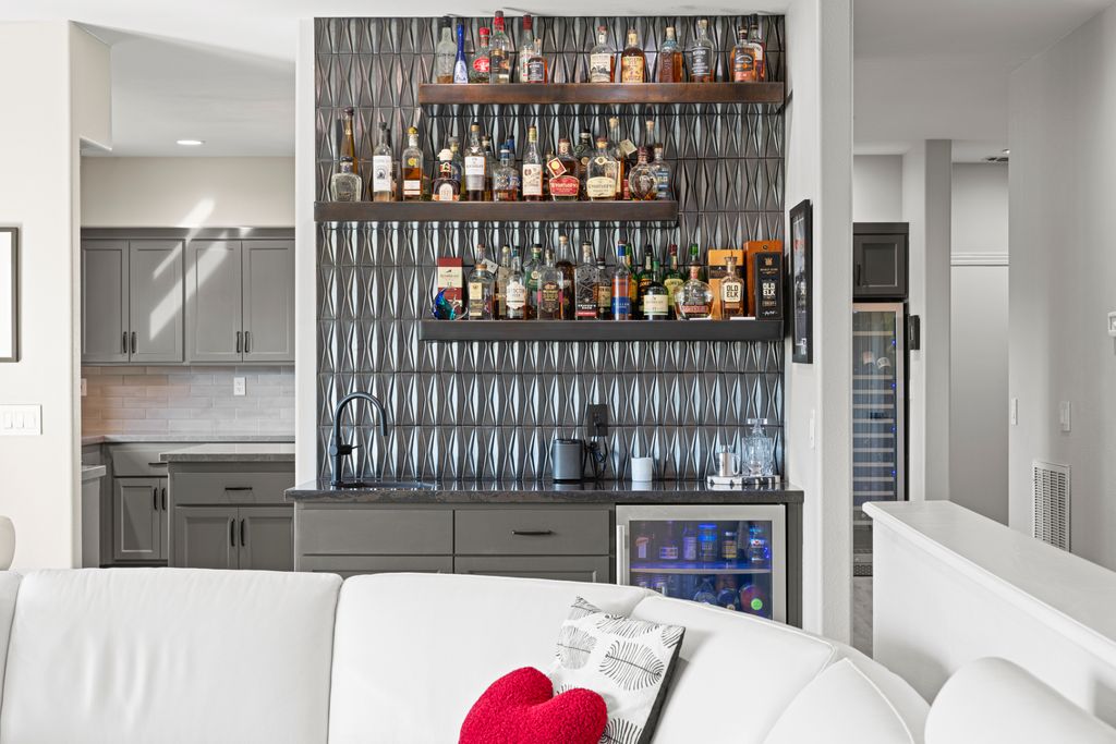 Designed for entertaining and everyday living, the living room features a wood-burning fireplace & built-in bar, flowing seamlessly into the family room, formal dining, & chef’s kitchen. The kitchen is complete with stainless steel appliances, large prep island, walk-in pantry, wine fridge, & adjacent laundry room. The private bedroom wing includes 3 guest rooms (one en-suite) & a luxurious primary suite with its own fireplace, spa-like bath with heated floors, view-framing walk-in shower, & a custom closet.