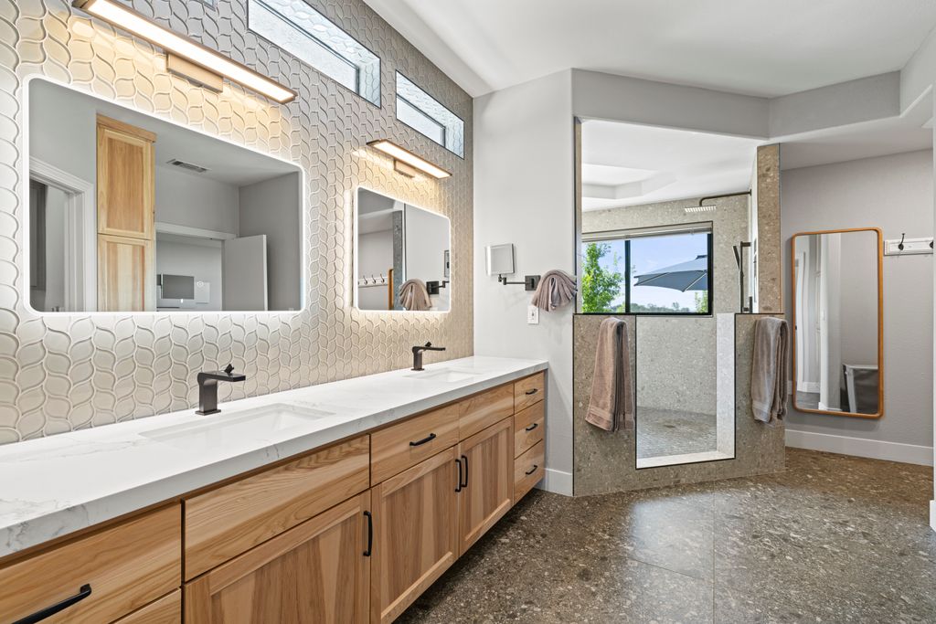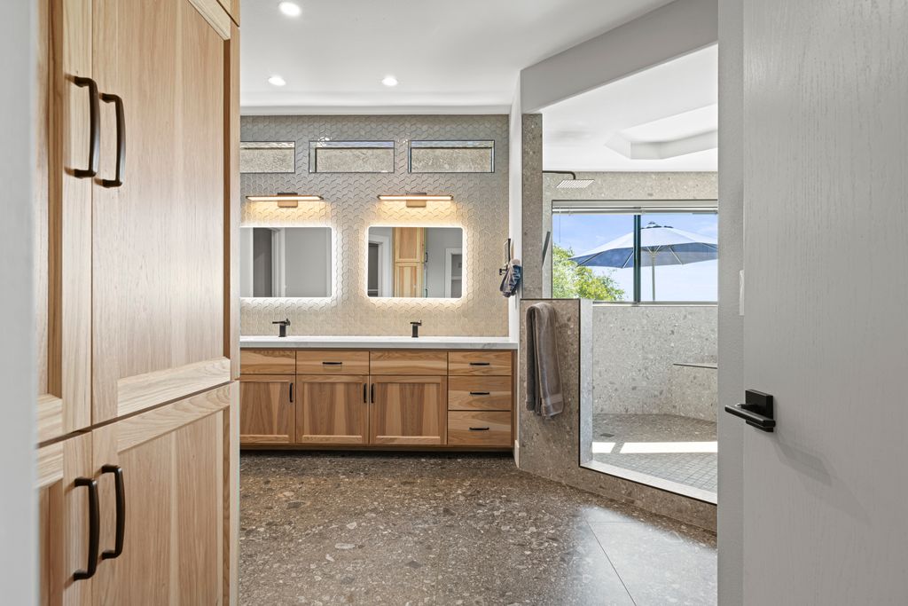 Think you don’t need acreage but still crave privacy & views? Think again. This beautifully remodeled 4-bedroom, 3.5-bath Newcastle retreat offers the best of both worlds—nearly 7 acres of land, with about 2 acres of landscaped, usable space surrounding the home & the rest left natural.