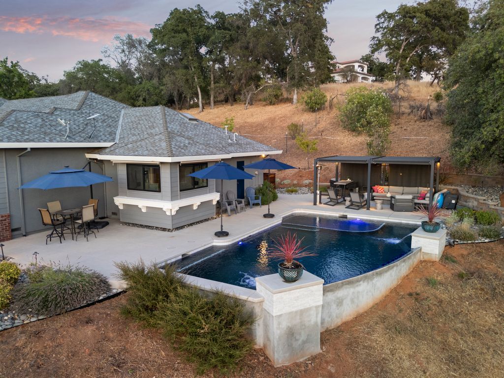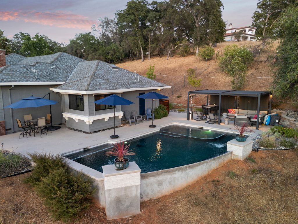 Step outside to your own landscaped oasis with an infinity pool, modern cabana, & year-round comfort via a heater/chiller system. Raised garden beds, lawn, & additional amenities like a 3-car insulated garage with epoxy floors & mini-split, 2 storage sheds, a dog kennel, & RV parking offer the ultimate in functionality. Located in the Del Oro School District. Smart home features include WiFi-controlled pool equipment, automated lighting, dual water sources (NID & well), & generator readiness.